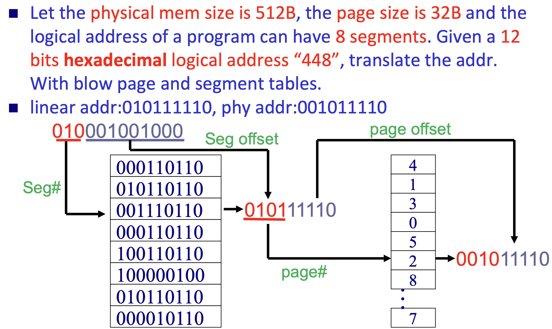 - linear address: segment base address(output of segment descriptor) + offset = 32-bit linear address